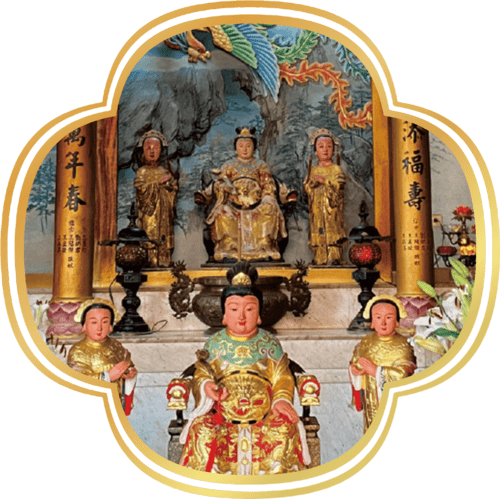 又稱西王母、王母娘娘、金母元君,是中國神話與道教中地位崇高的女神,居住於崑崙山瑤池,被尊為「眾女仙之首」與「天界之母」。祂掌管長生不老、女性命運、健康平安、婚姻子嗣,並舉行蟠桃盛會。祂的形象從早期兇神演變為慈祥母神,在台灣信仰中特別盛行,被視為祈求福祿壽喜的重要神祇。